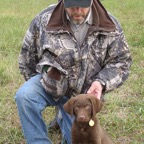 Steve Sherbondy with Westwind Primetime Deke, 9 months old, winner of the Junior Puppy stake. Deke is a CH Saco MH and CH Westwind Stitch in TIme JH puppy.