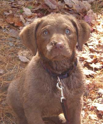 "Dempsey" At 12 weeks she is already looking for a bird down when she hears gun fire. Here she is after retrieving her first duck. She belongs to the owners of a hunting preserve in New Hampshire.